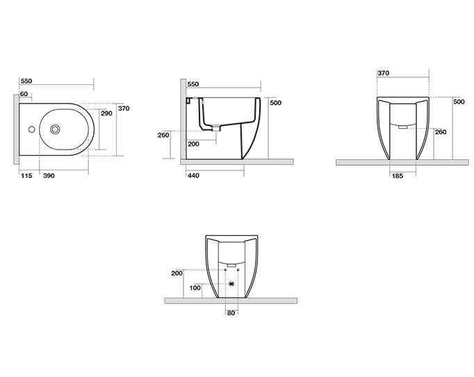 Kerasan Flo 312601 Биде напольное приставное 53 см