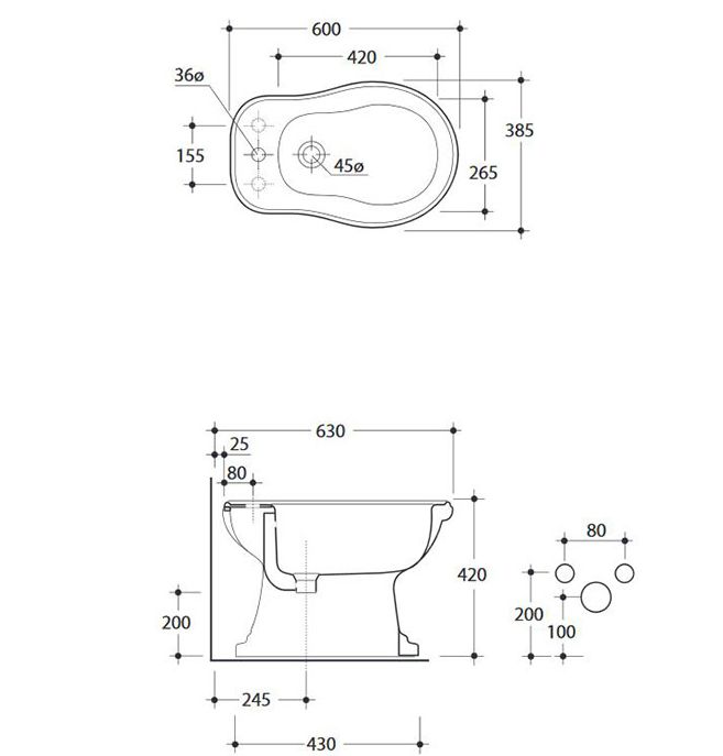 Kerasan Retro Биде напольное 60x38,5 см, с 1 отверстием под смеситель и переливом, цвет: Bianco 102001*1
