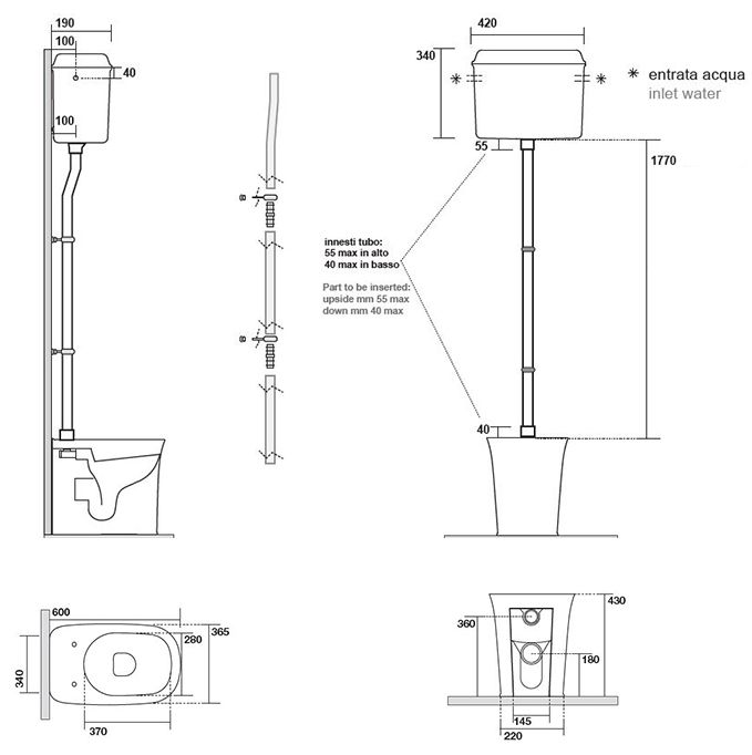 Механизм слива Kerasan 754390cr,waldorf Retro для низкого бачка, без трубы,без подводки