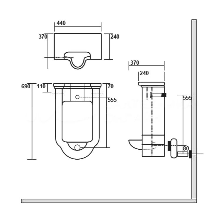 Писсуар подвесной Kerasan Waldorf 413001 сенсорный, белый, с сифоном, безободковый