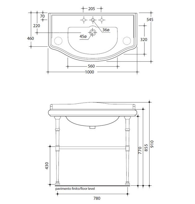 Консоль под раковину Kerasan Retro 100 730093 Бронза