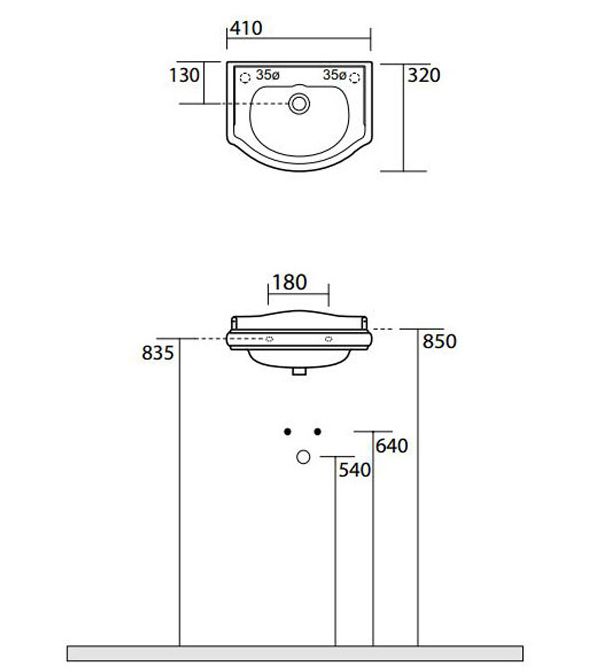 Kerasan Retro 103301 - Мини раковина 41 * 30 см (без отверстия для смесителя)