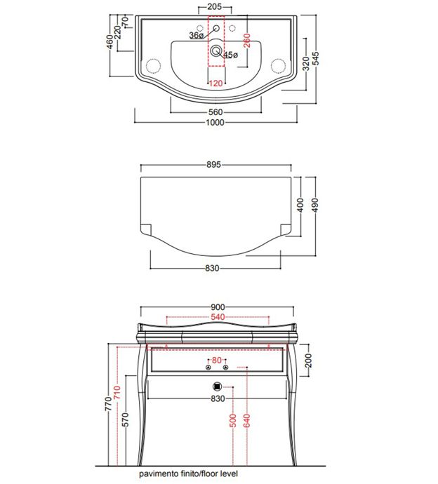Kerasan Retro 105001*3 - Раковина для ванной комнаты 100*54 см (3 отверстия для смесителя)