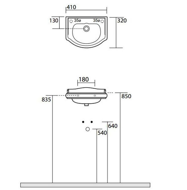 Kerasan Retro Раковина подвесная 41x30 см, с 1 отверстием под смеситель справа, цвет: Bianco 103301*1 dx
