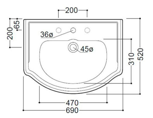 Kerasan Retro Раковина подвесная 69x52 см, с 3 отверстиями под смеситель и переливом, цвет: Bianco 104601*3