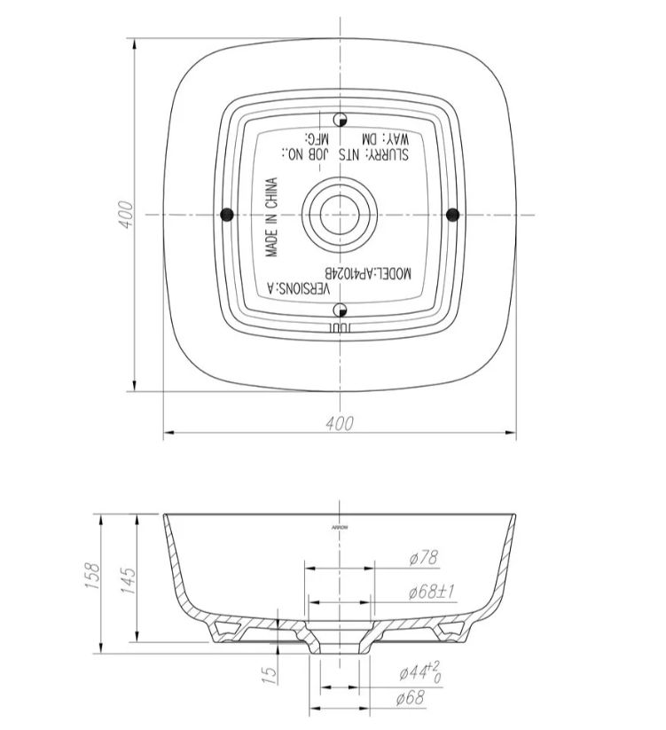 Раковина Arrow 40 накладная с донным клапаном, Серая пустыня AP41024B
