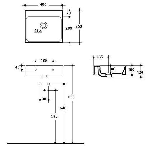 Kerasan Cento Раковина подвесная 40x35 см, без отверстия под смеситель, с переливом, цвет: Bianco