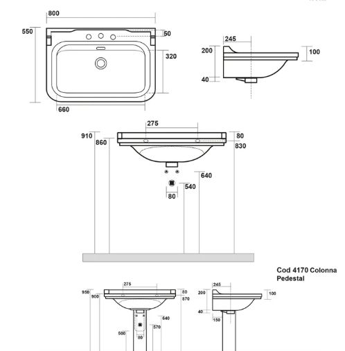 Раковина Kerasan Waldorf 4141K1bi/cr*3 с 3 отверстиями