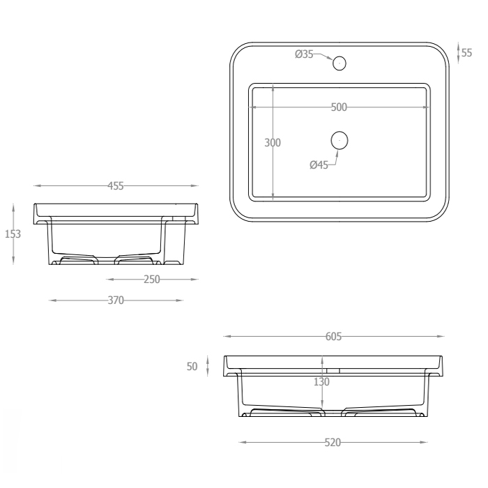 Catalano Zero Раковина 55*47 полувстраиваемая, цвет белый глянцевый