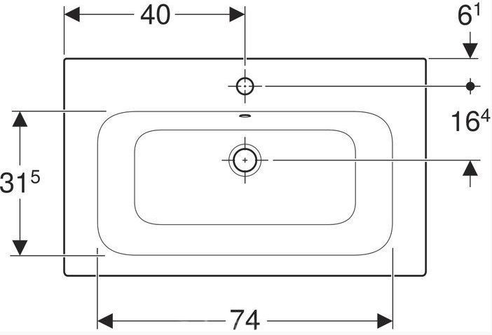 Geberit Renova Plan Мебельная раковина Slim 80х48 см, с отв. под смеситель, с переливом 122280000