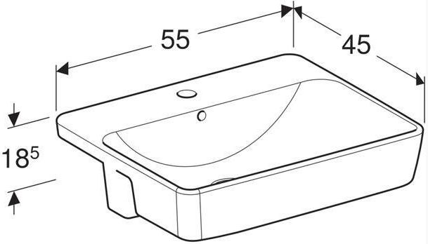 Geberit VariForm Раковина полувстраиваемая в столешницу квадратной формы, 55х45 см, с отв. под смеситель, с отв. перелива 500.681.01.1