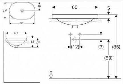Geberit VariForm Раковина встраиваемая в столешницу эллиптической формы, 60х40 см, без отв. под смеситель, без отв. перелива 500.730.01.2