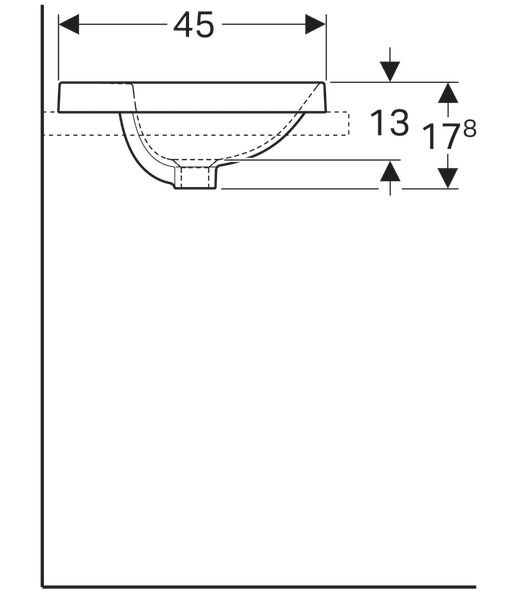 Geberit VariForm Раковина встраиваемая в столешницу эллиптической формы, 60х45 см, с отв. под смеситель, с отв. перелива 500.732.01.2