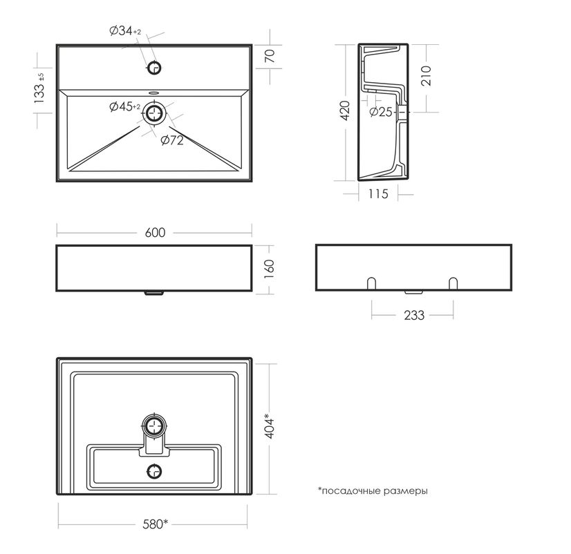 Умывальник мебельный Novel 60 ВКС Белый S1