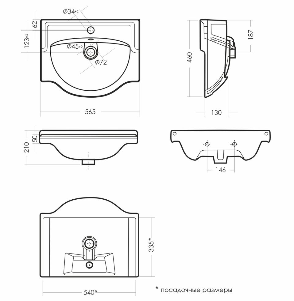 Умывальник мебельный Реал 56 ВКС Белый S1