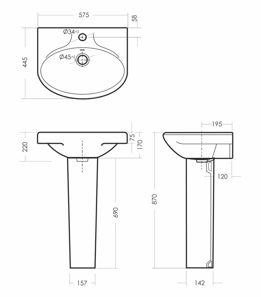 Умывальник пьедестальный Самарский 57 ВКС Белый S1