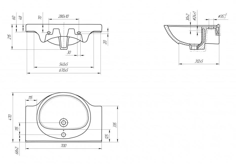 Умывальник с 1 отв. ERIKA ERI 70