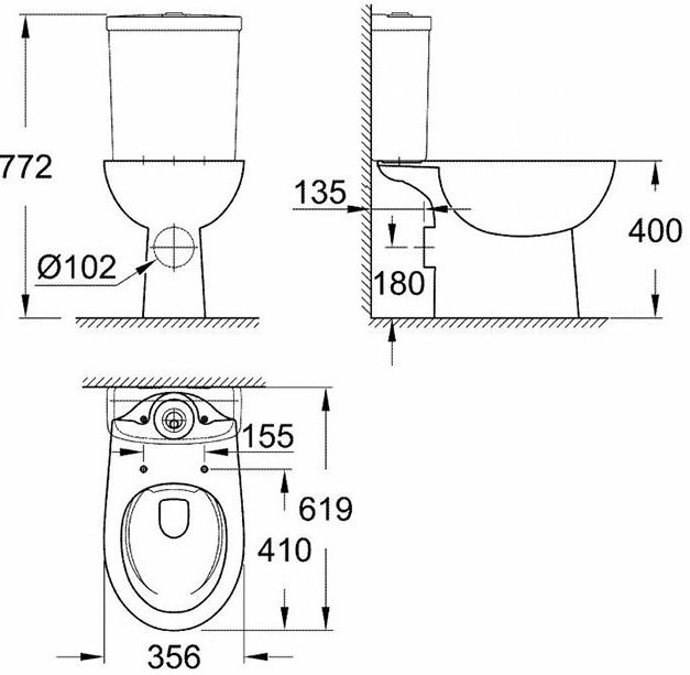 Bau Ceramic Унитаз безободковый напольный (бачок заказывается отдельно), горизонтальный выпуск 39349000