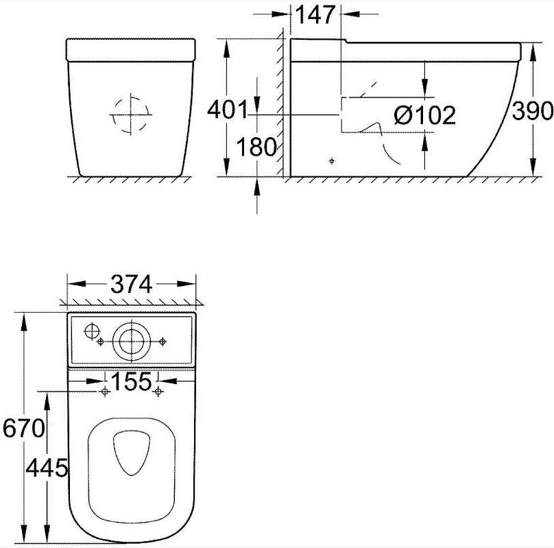 Euro Ceramic Унитаз напольный безободковый (без бачка и сиденья), альпин-белый 39338000