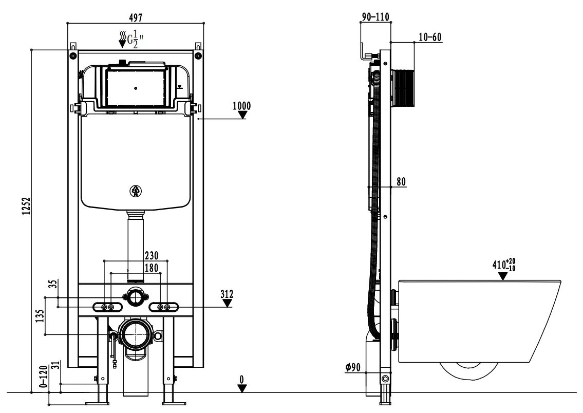Унитаз подвесной ARROW AKB2130H со смарт функциями, белый/бежевый