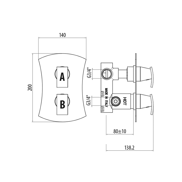 Gattoni Termostatici Термостатический смеситель для душа в современом стиле, 2 рычага на 2 выхода, цвет хром