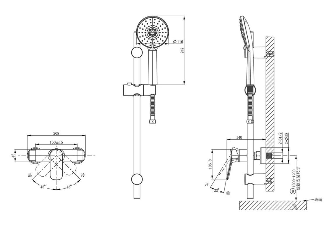 Смеситель для душа ARROW AG3503CP-TZ с душевым гарнитуром и штангой, Хром