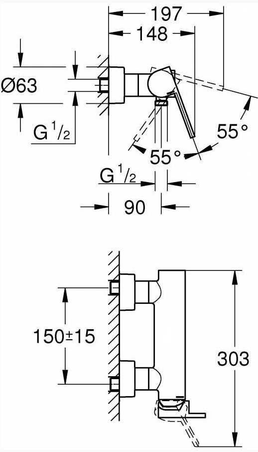 Смеситель для душа , настенный монтаж, хром 33577003 Plus