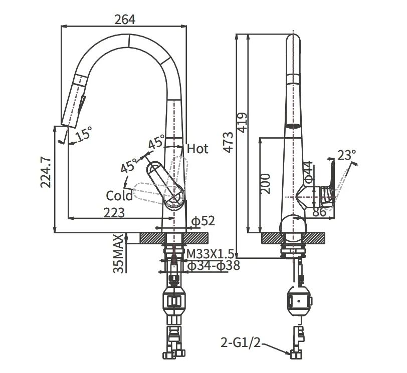 Смеситель для кухни ARROW AG4506 с выдвижным изливом, хром