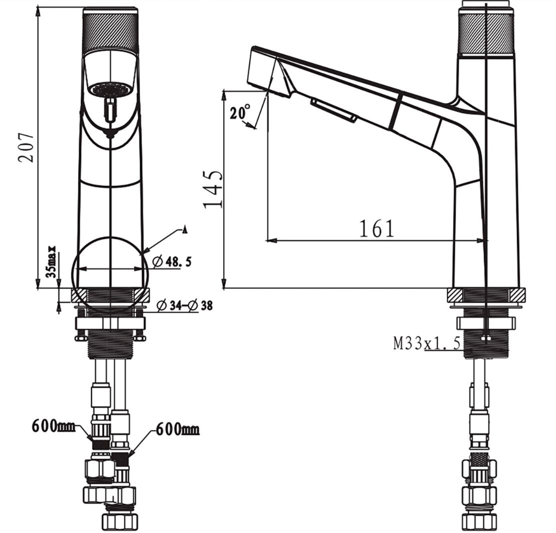 Смеситель для кухни ARROW AMP11868ACCP с выдвижным изливом, хром