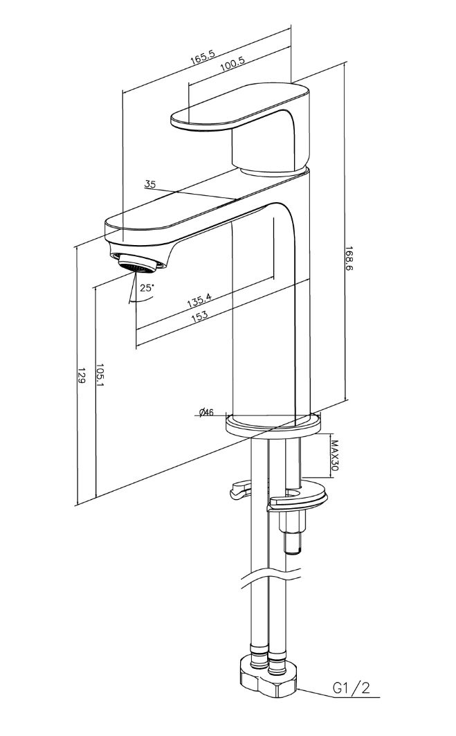 АЛЬФА смеситель для раковины 110 без донного клапана AQ1910CR