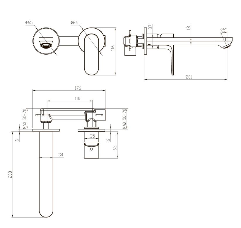 АЛЬФА смеситель для раковины настенный (внешняя и скрытая часть) AQ1913CR