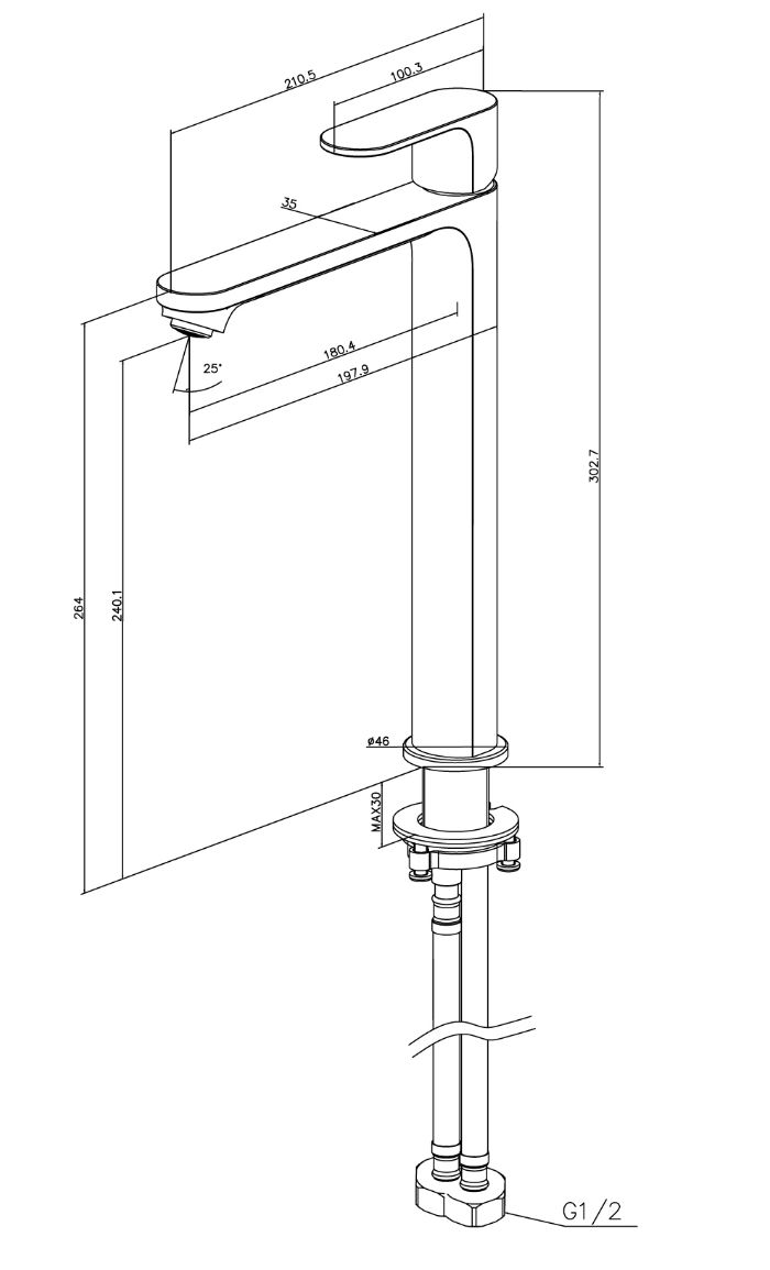АЛЬФА смеситель для раковины высокий 245 без донного клапана AQ1904CR