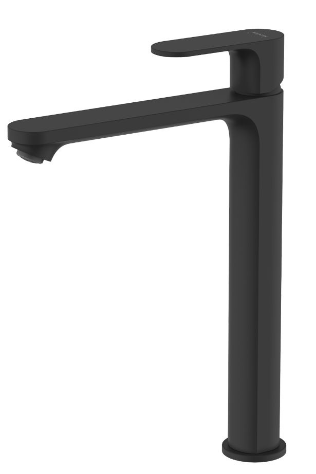 АЛЬФА смеситель для раковины высокий 245 без донного клапана, матовый черный AQ1904MB