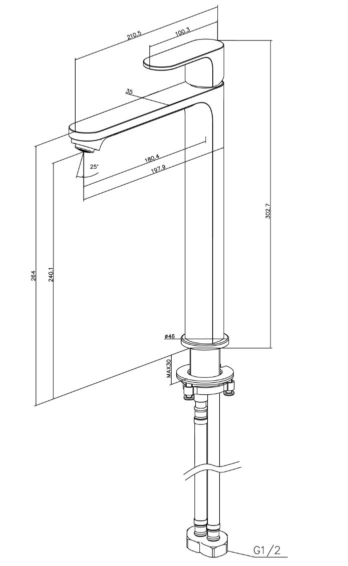 АЛЬФА смеситель для раковины высокий 245 без донного клапана, оружейная сталь AQ1904BGM