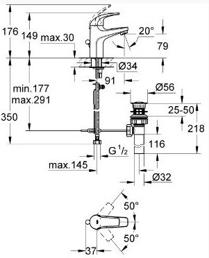 BauCurve Смеситель для раковины с донным клапаном, хром 32805000