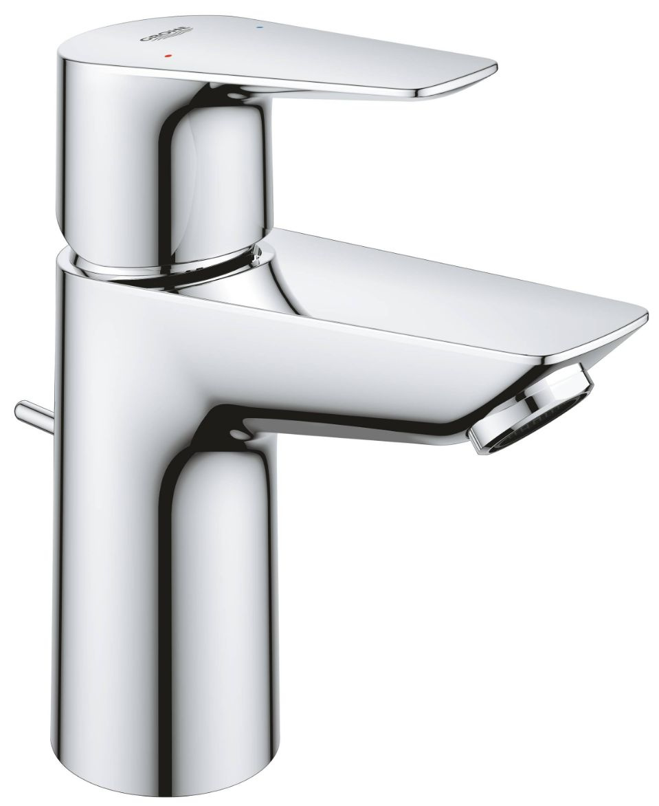 BauEdge Смеситель для раковины с ограничителем температуры и рычажным донным клапаном, размер S, хром (замена 23328000) 23328001