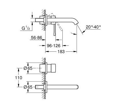 Essence+ Смеситель для раковины настенный, комплект верхней монтажной части для 23571000, на 2 отверстия, M-Size, с ограничителем температуры