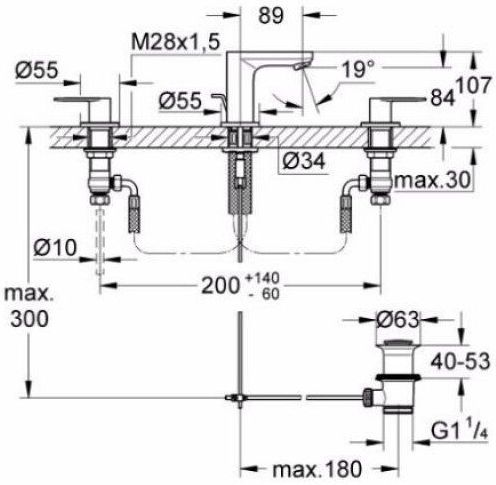 Eurosmart Cosmopolitan Смеситель для раковины, на 3 отверстия с донным клапаном, монтаж на раковину, 13 л/мин, хром 20187000