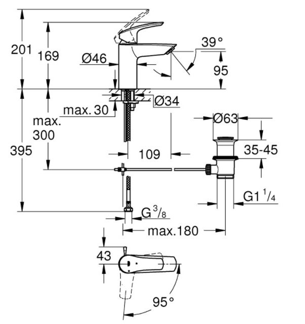 Eurosmart Смеситель однорычажный для раковины, S-Size, хром 32926003