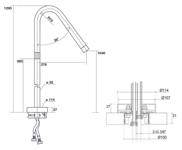 KERASAN Retro 7363K7, база 100см, под раковину 105, цвет: белый глянцевый, ножки