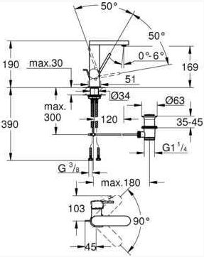 Plus Смеситель однорычажный для раковины со сливным гарнитуром, поворотный излив, M-Size, 5,7 л/мин, хром 23871003
