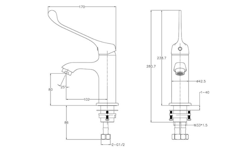 Смеситель для раковины ARROW AG4005 для медицинских учреждений, хром