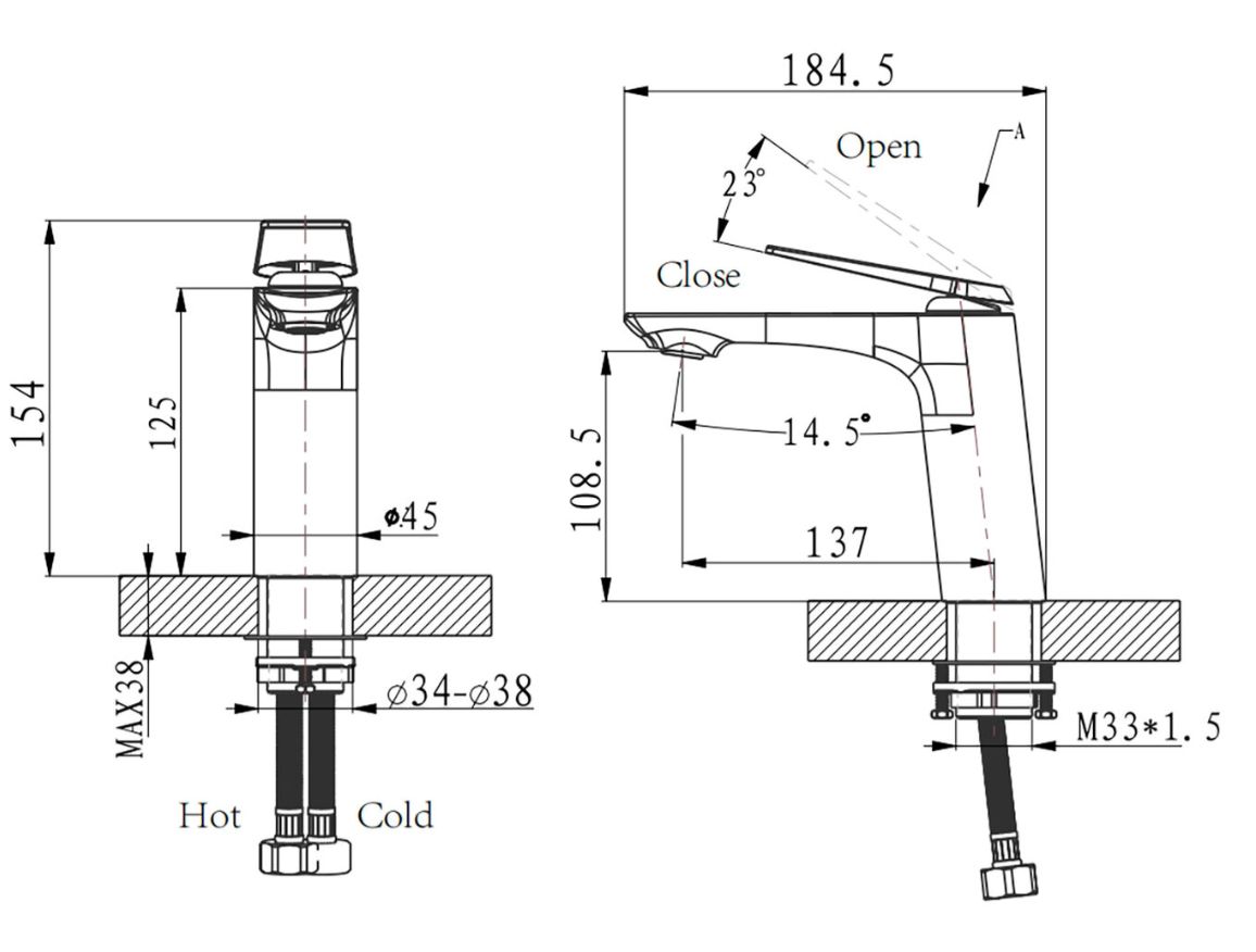Смеситель для раковины ARROW AMP1145LF90, серый