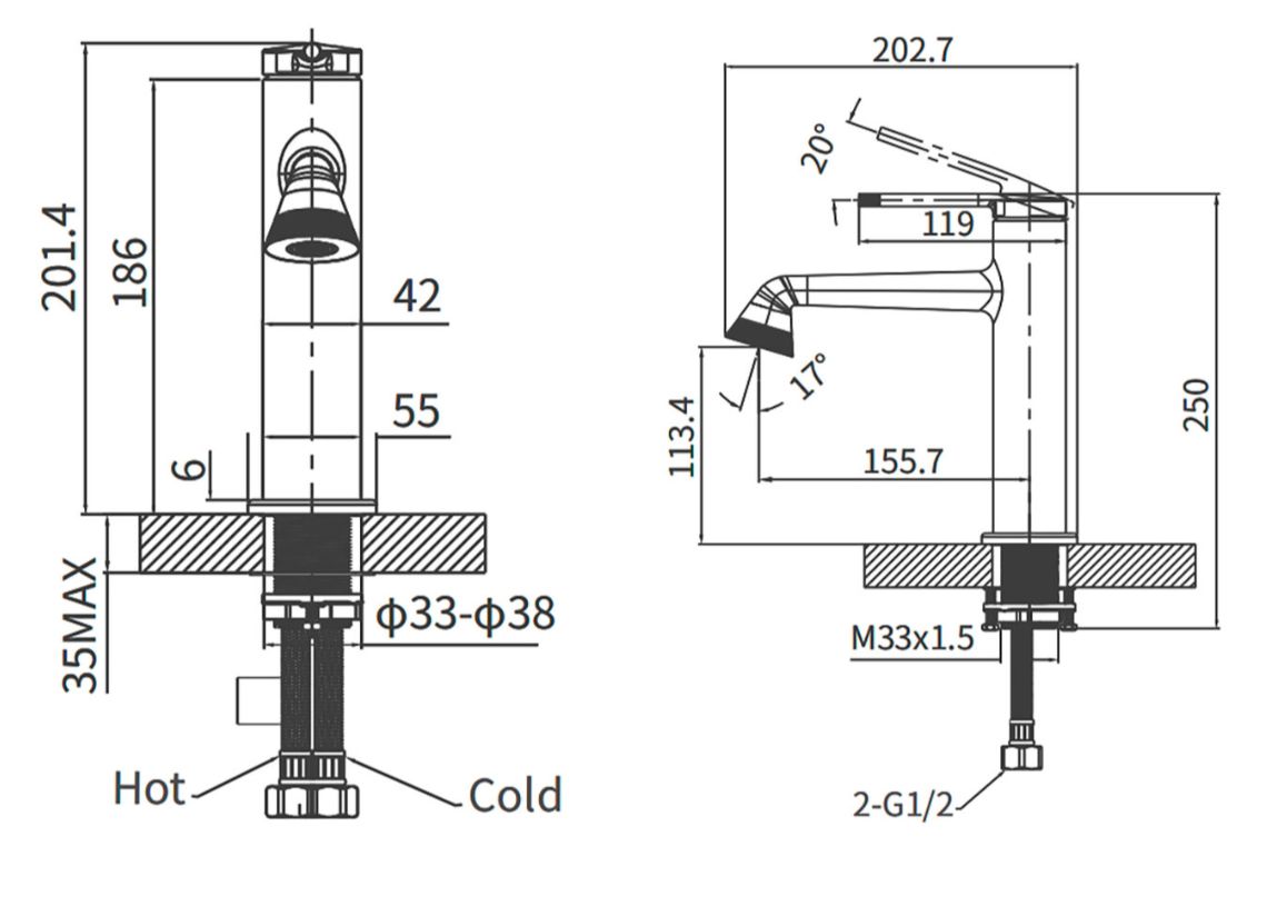 Смеситель для раковины ARROW AMP11855H, черный матовый
