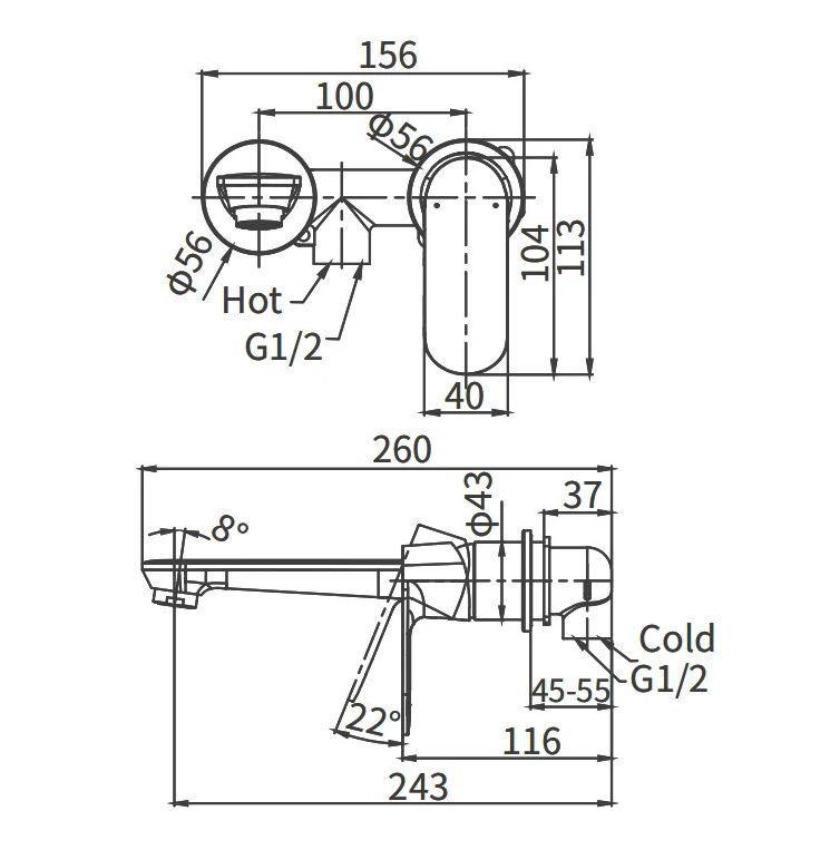 Смеситель для раковины ARROW ARM12848 с внутренней частью, хром