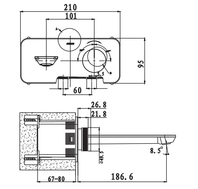 Смеситель для раковины ARROW ARM12872CP с внутренней частью, хром