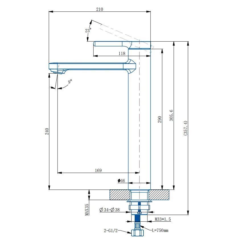 Смеситель для раковины ARROW N11M6071JGG, серый