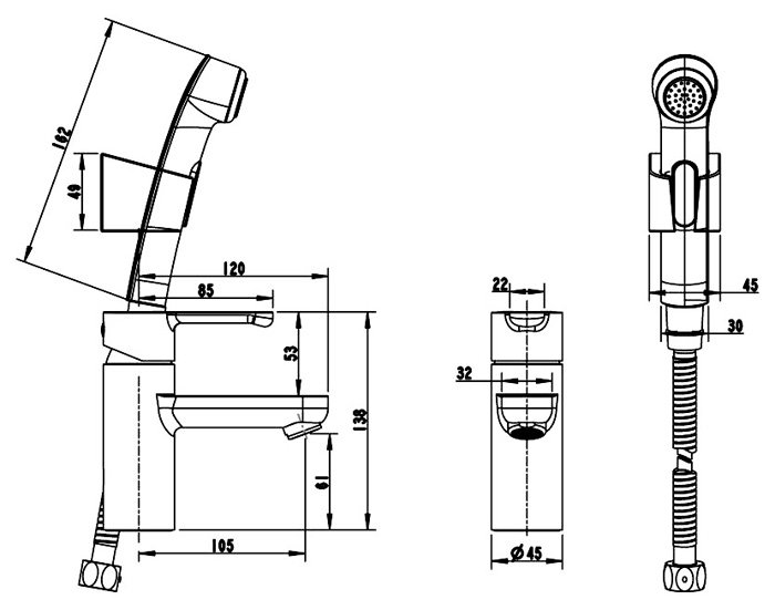 Смеситель Bravat Stream F13783C-3 для раковины с гигиеническим душем