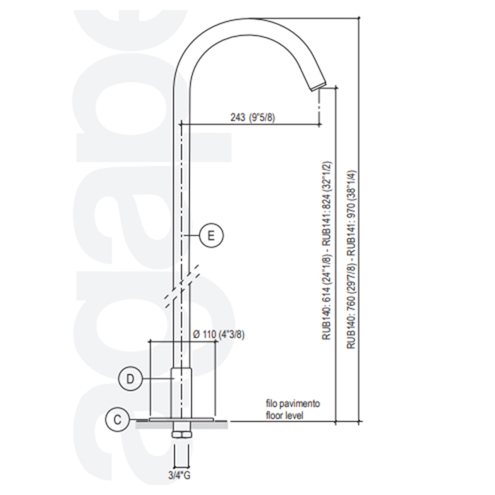 Agape Fez Напольный смеситель для ванны, без регулятора температуры и подачи, высота: 97см, цвет: хром