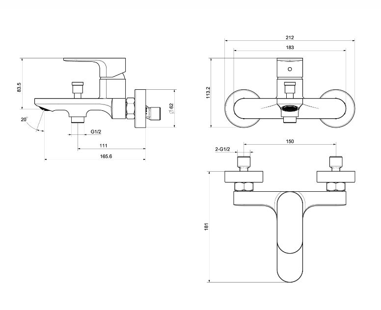 АЛЬФА смеситель для ванны, матовый черный AQ1940MB